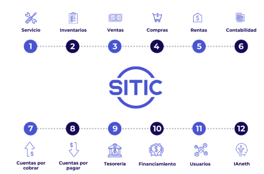 En SITIC desarrollamos un ERP especializado que conecta las áreas clave de distribuidoras, concesionarias, talleres de servicio y refaccionarias dentro de una sola plataforma.